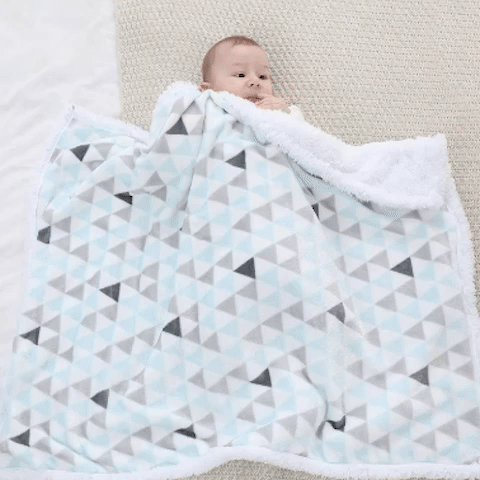 Vous connaissez ce moment où rien ne semble calmer votre bébé ? Notre couverture combine deux textures qui font des miracles : une face en tissu imprimé de motifs géométriques triangulaires tendance, et une face en peluche sherpa d'une douceur incomparable.